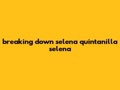 Breaking Down Selena Quintanilla Selena