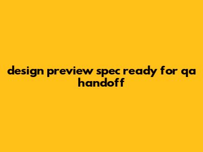 Design: Preview Spec Ready For QA Handoff